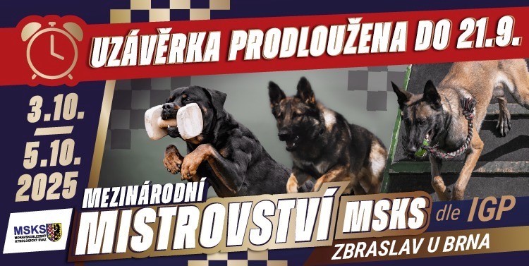 1.Potvrzení o přijetí závazné přihlášky na Mezinárodní mistrovství MSKS 2025 dle IGP3 a vložený závod dle IGP1